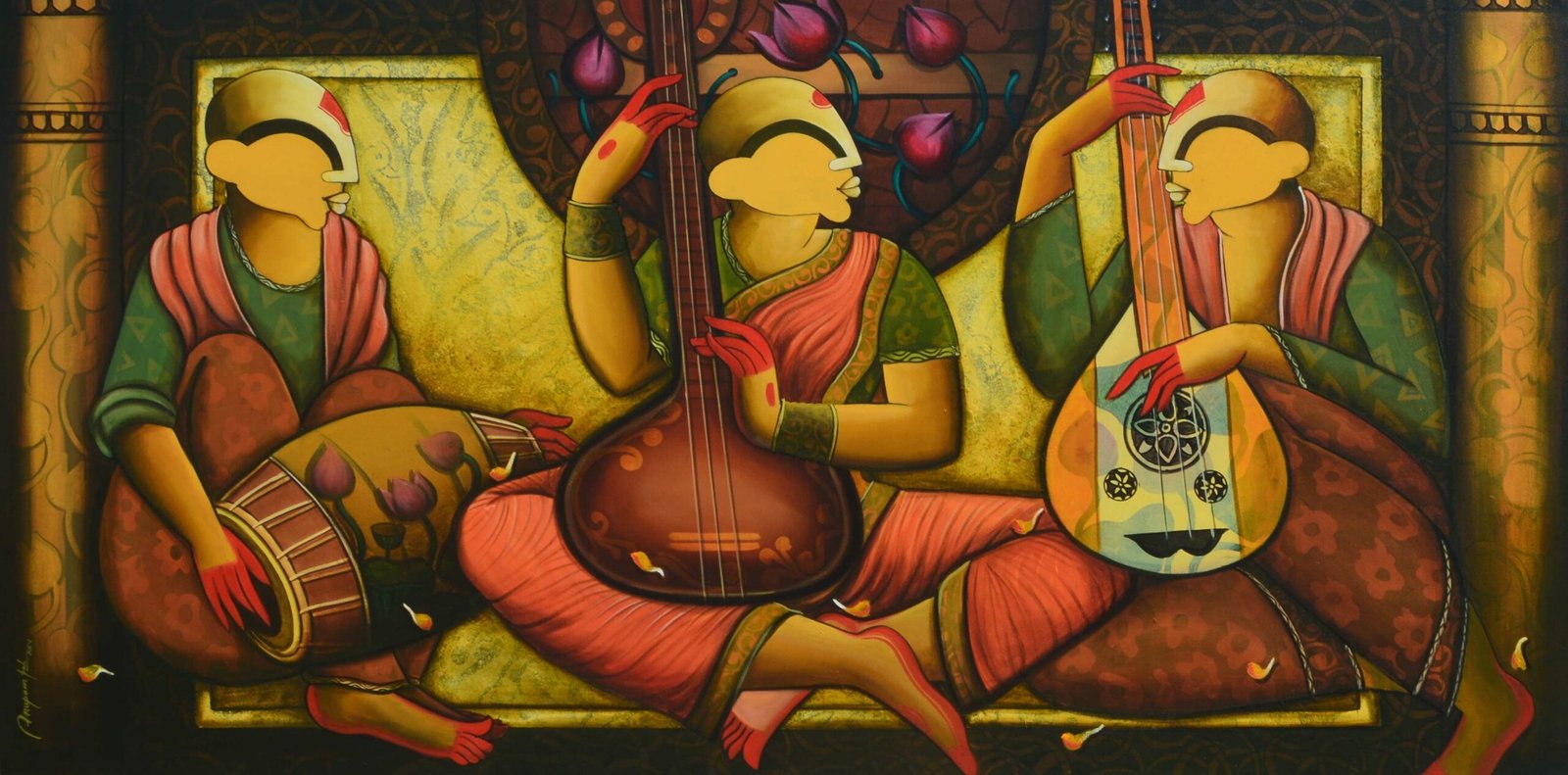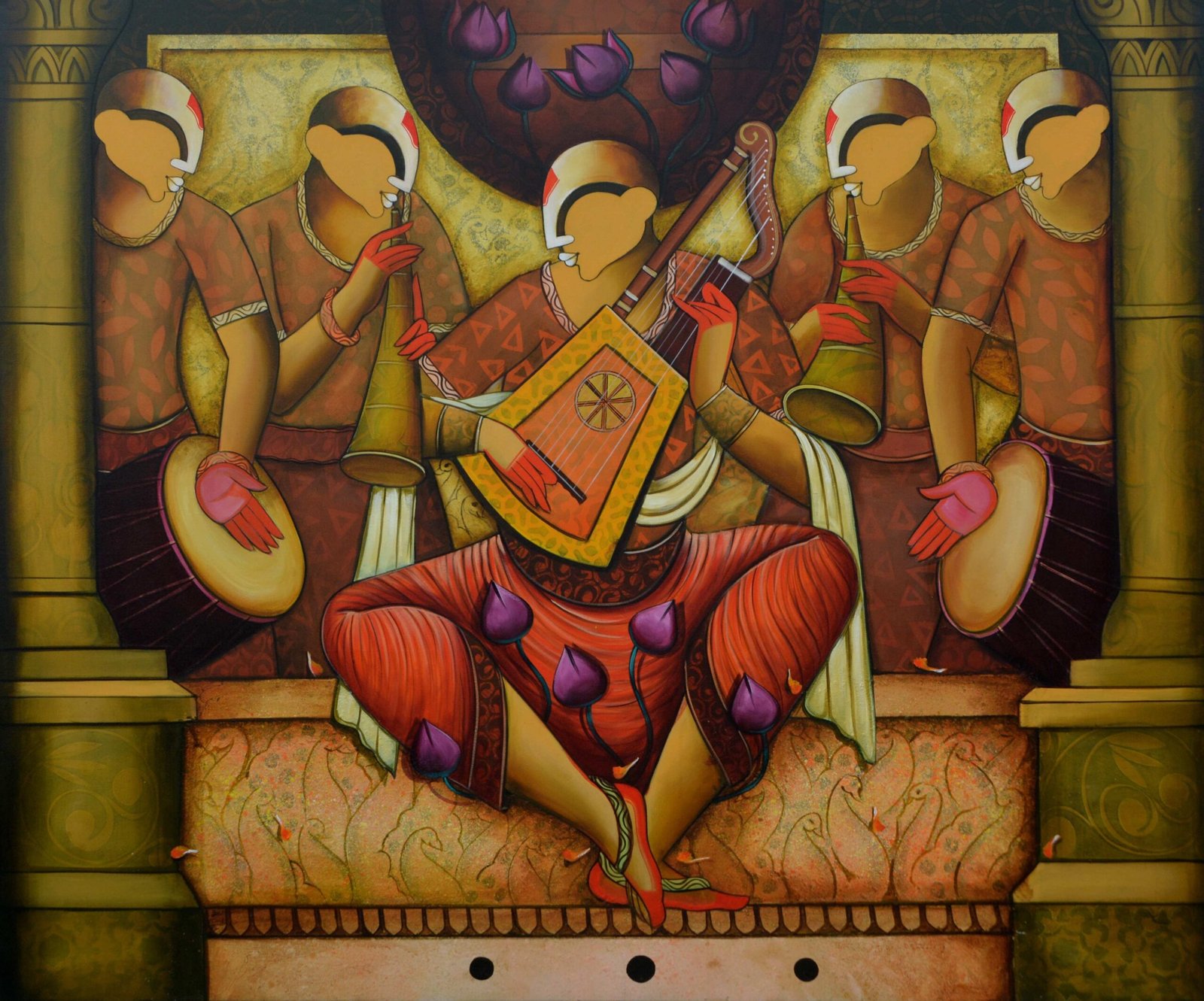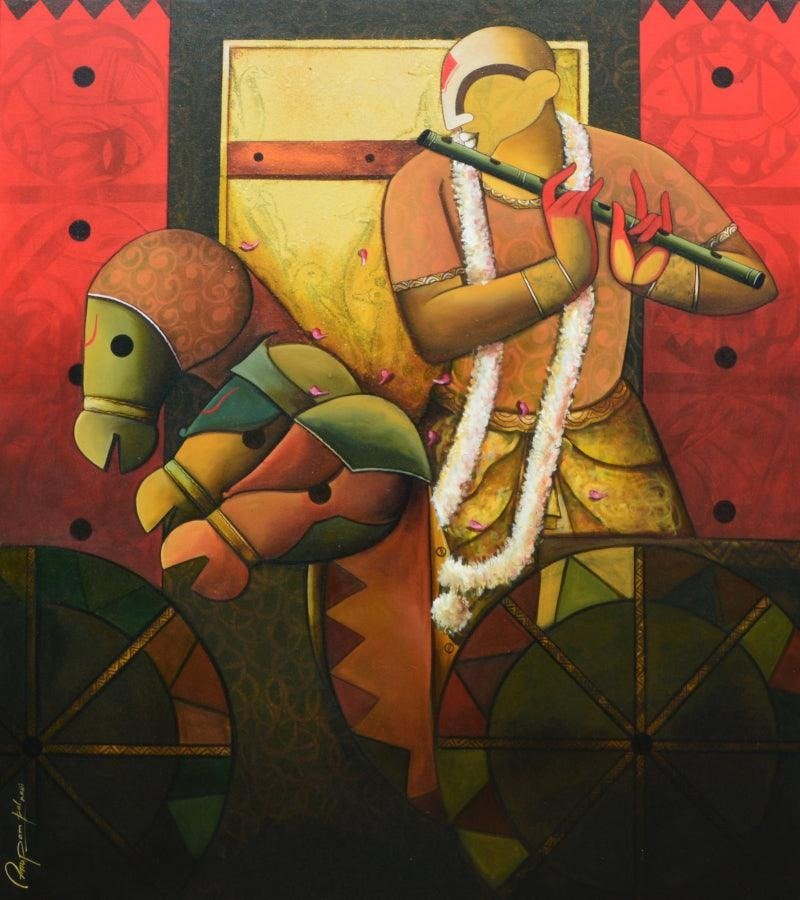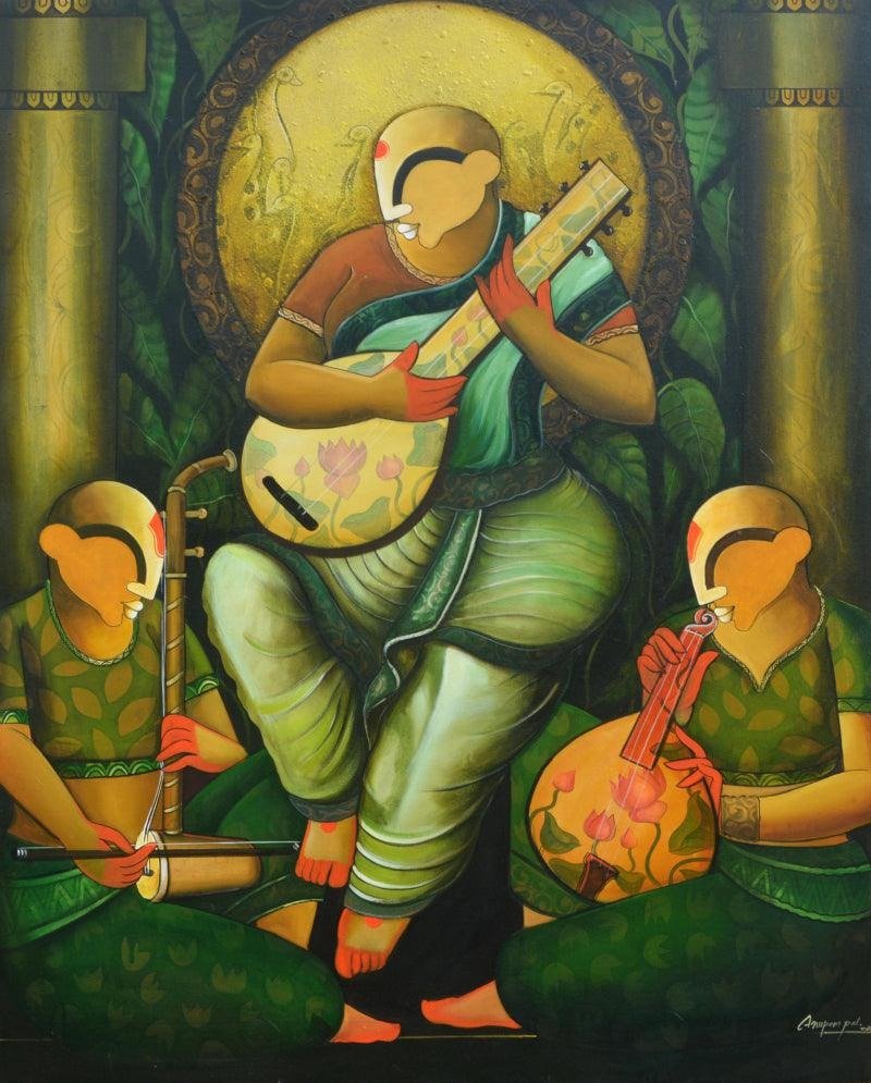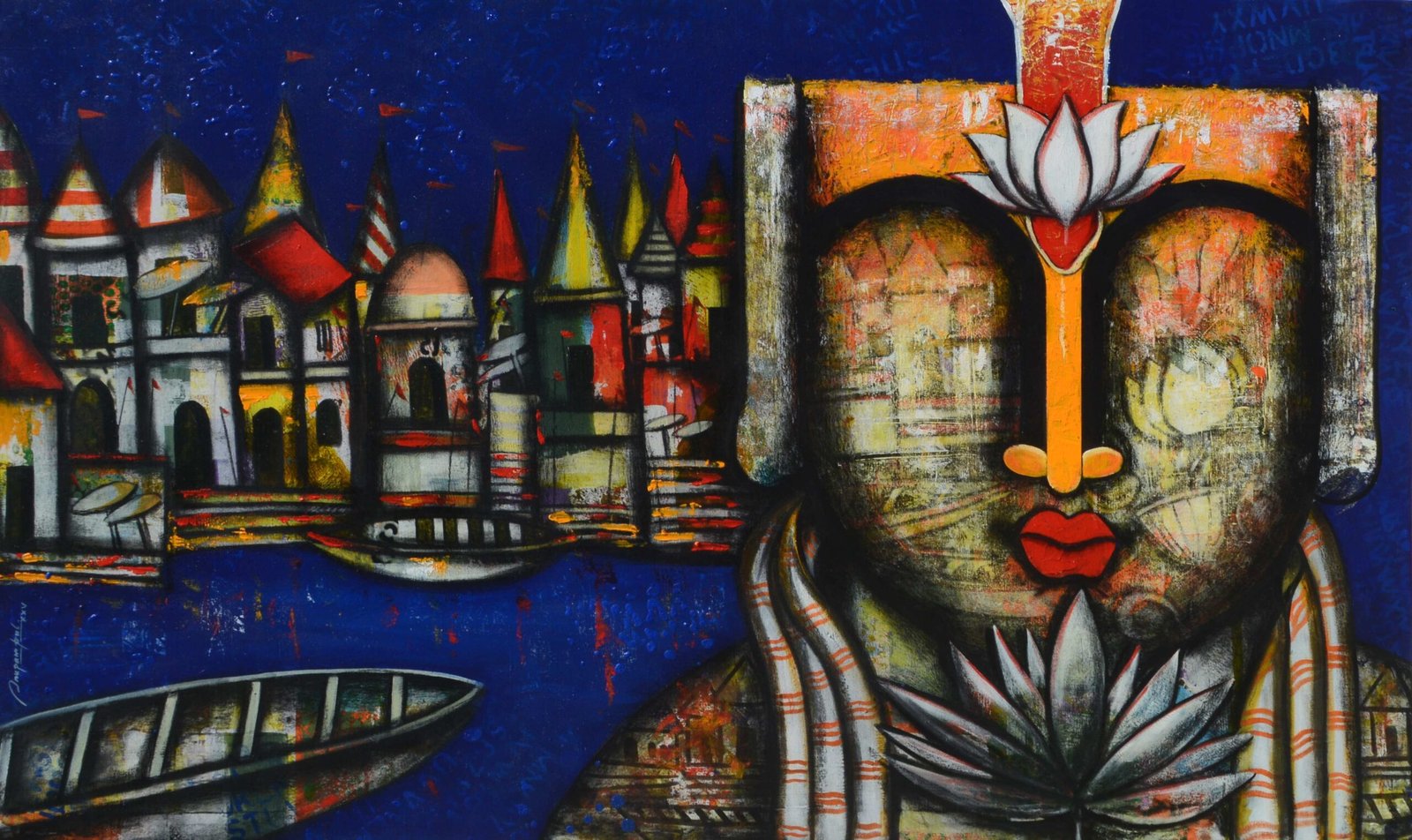 The artist’s dynamic thought process is reflected through his abstract ‘Radha Krishna’ painting. ‘Conservation’ is another ultimate contemporary piece, which visualizes and explains conservative thoughts of the society related to women. Anupam uses a vibrant colour palette on the canvas to reflect mixed moods of his subjects.