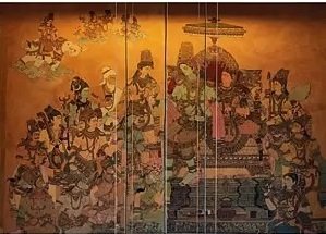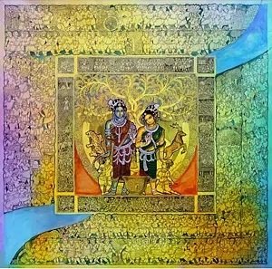 Working primarily in acrylic on canvas and silk, Andhluri brings a mural-like grandeur to his practice, often extending into monumental formats that echo temple storytelling traditions. His works are not merely devotional; they are narrative tableaux – densely populated, rhythmically structured, and steeped in symbolic detail.
