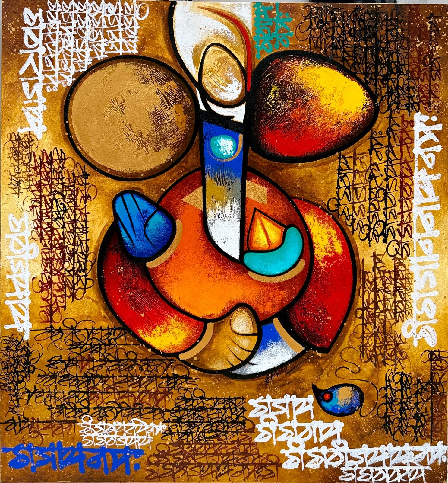 Adhering more to a different approach and tenor, the paintings of Om Swami propounds on certain human traits like sensuality and love using bold and thick strokes. The ‘She’ highlighted in his paintings, to an extent is a comprehensive revision of certain traditional aspects, the archaic women, which has been in the human imagination for a long period of time. His name is associated with paintings with rich imagery, well conceived theme and diligently executed vibrant colors. Though figurative, but contemporary, he has cultivated a style of his own using minimal details.