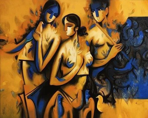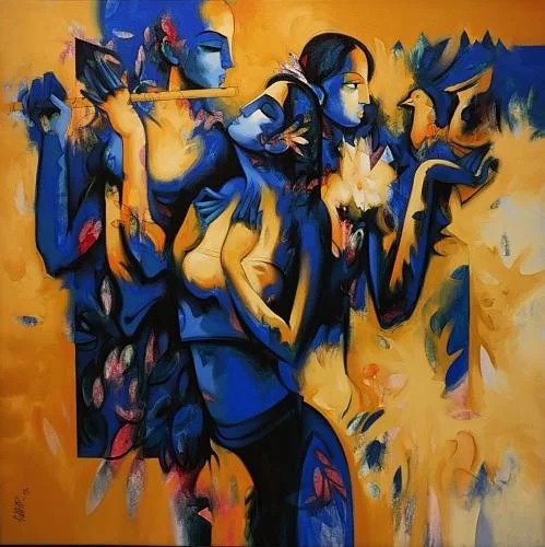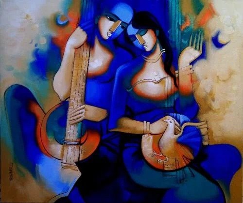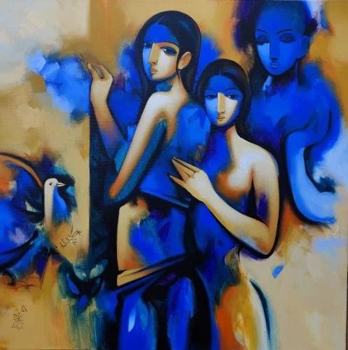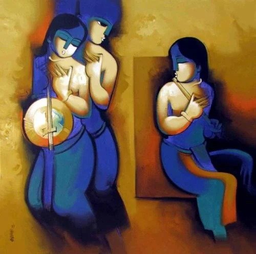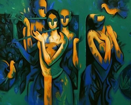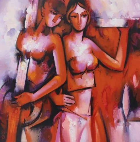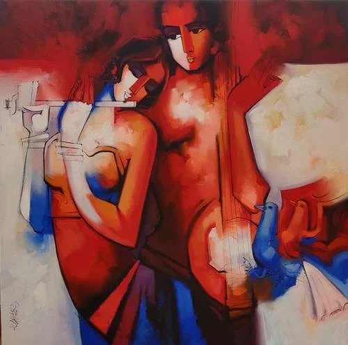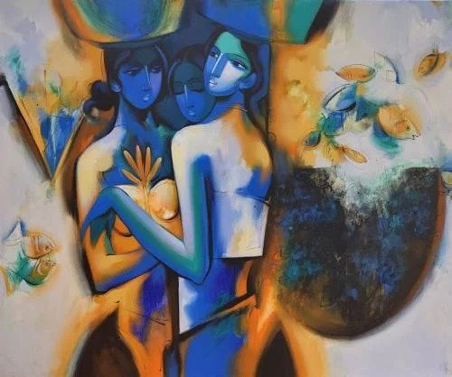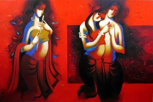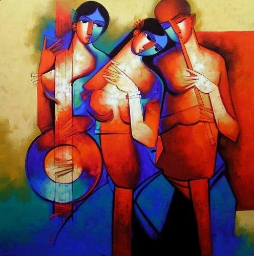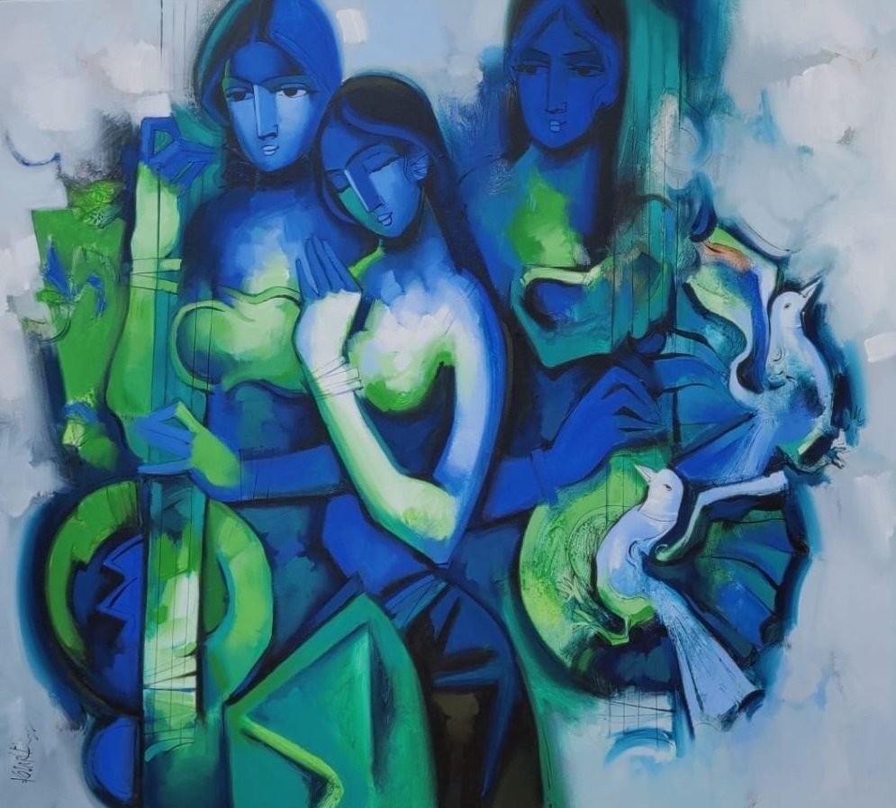 Artist, Arvind Kolapkar is an artist from Pune who is greatly inspired by music, particularly classical and folk music which has played a predominant role in the work. works are bright, happy expressions of joyous unions. In most of his paintings, one observes an amorous couple or groups of friends enjoying each other’s company. For Kolapkar, painting is an ongoing process of creative activity where emotion and music plays a greater role in the end product.