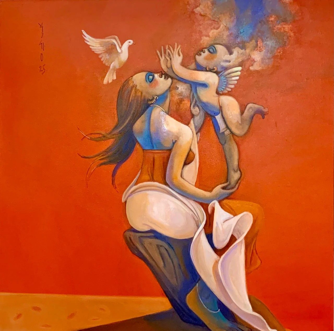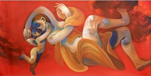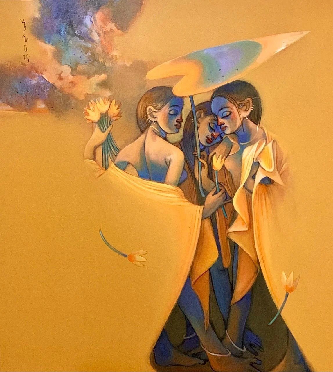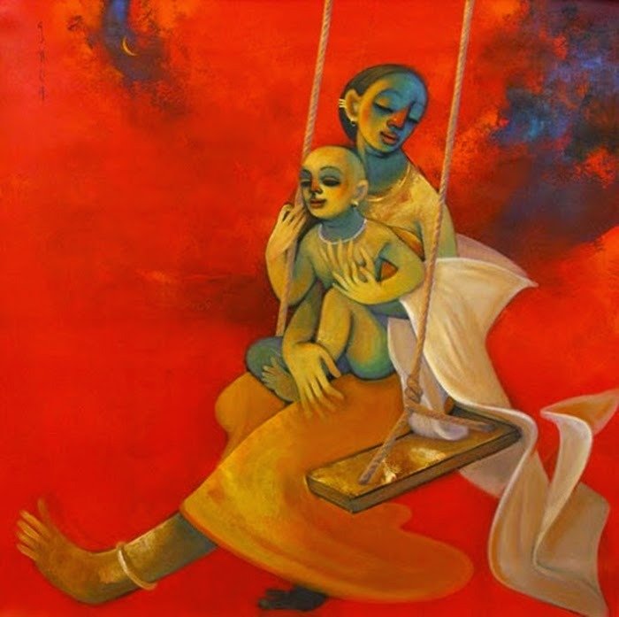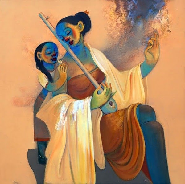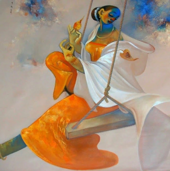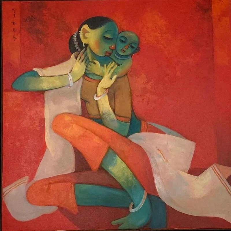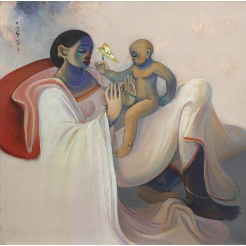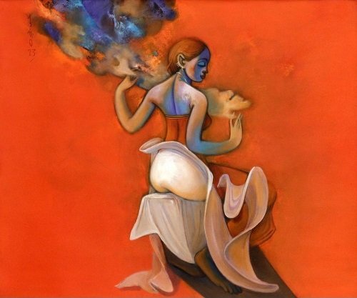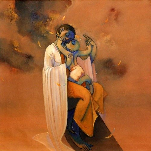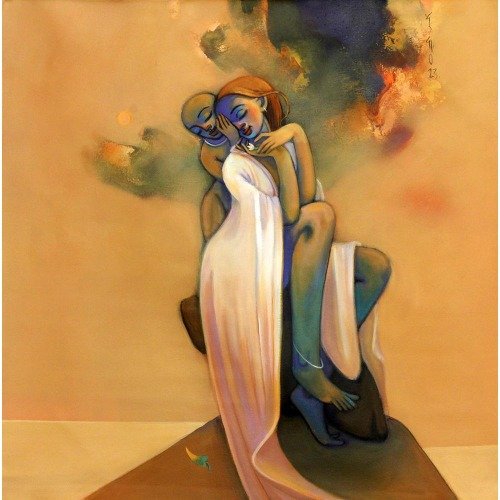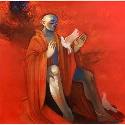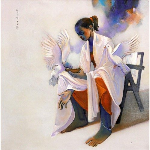 Born in 1960, Artist, Buwa Shete graduated in Applied Arts from Abhinav Kala, Pune, in 1983. After graduating, he worked with advertising agencies as a creative director and illustrator for several years, while painting simultaneously. His first recognition came when he won an award at the National Exhibition of Young Painters in Calcutta, organized by M. F. Hussain. His paintings for a calendar on “Philosophy by Various Saints” won the London Advertising Award in 1997. His style is characterized by contemporary modernist figures, rendered mysterious by his uniquely Indian style. The artist lives and works in Pune.