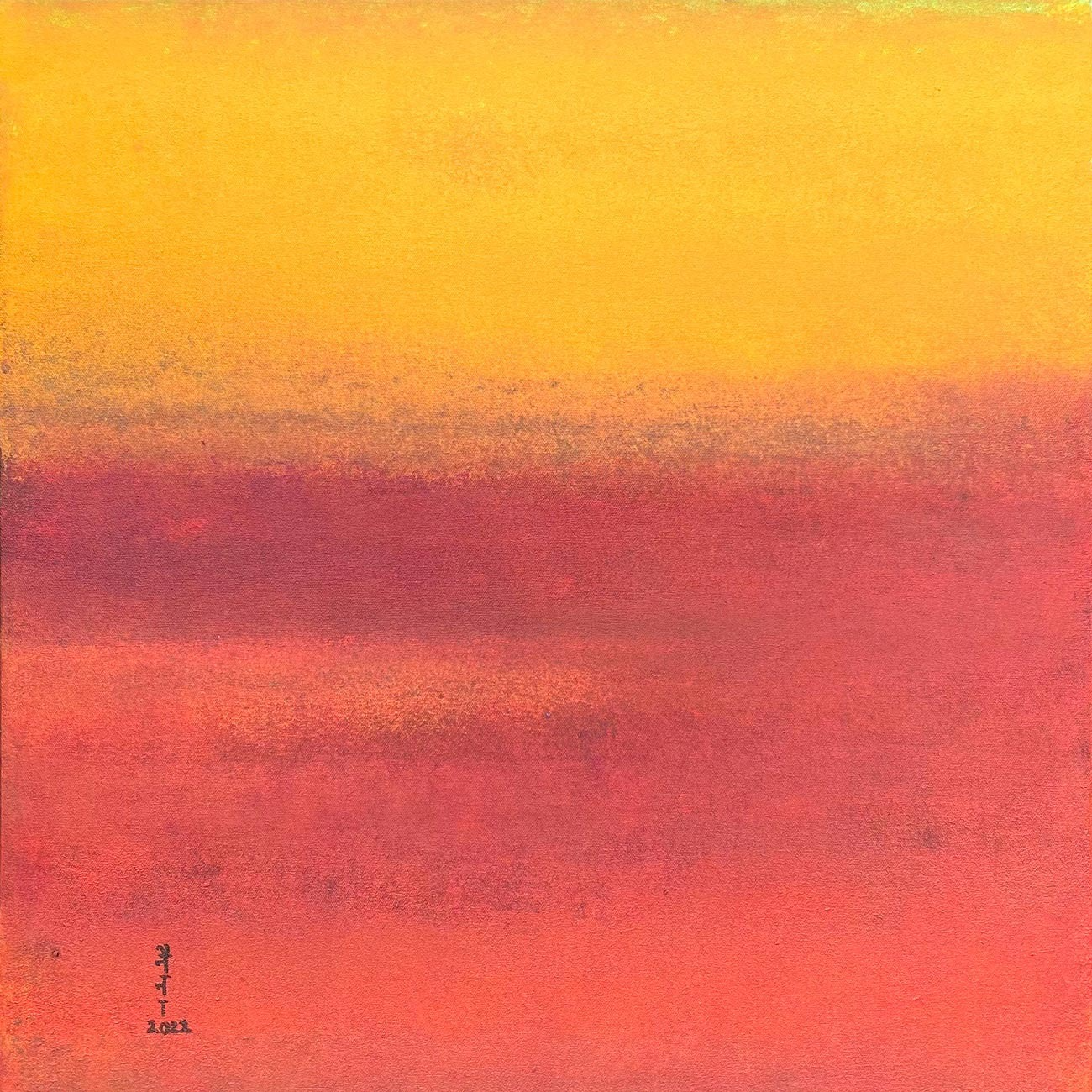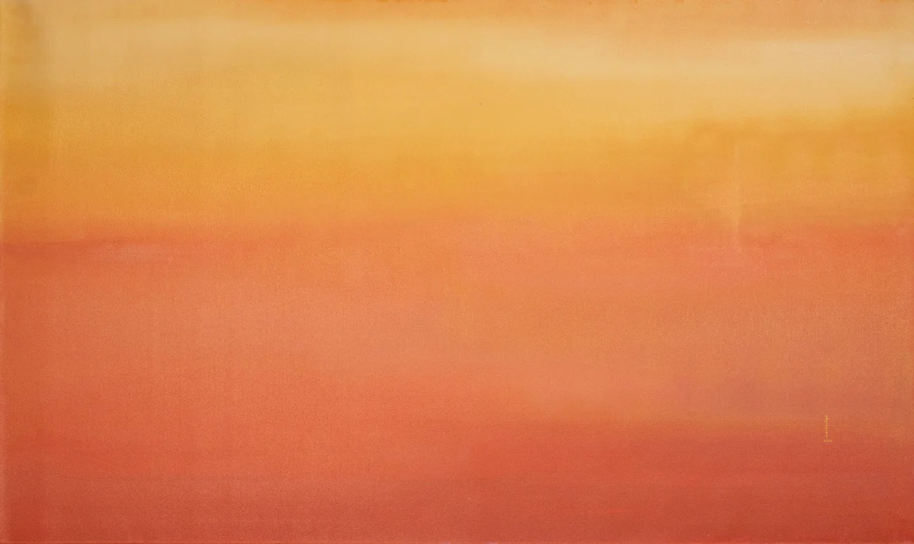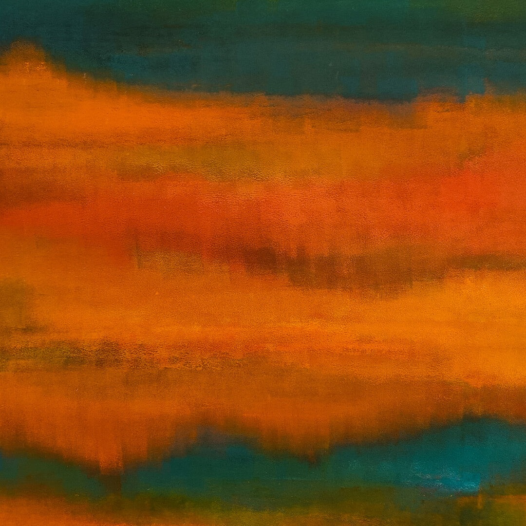 Colour remains the central force within her practice. Through layered pigments, diffused edges, and delicate variations in tone, she creates expansive colour-scapes that oscillate between serenity and intensity. The paintings unfold slowly, inviting viewers into moments of contemplation rather than immediate resolution.