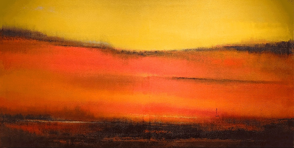 Naina Maithani’s abstract paintings are deeply atmospheric works that translate memory, landscape, and emotion into luminous fields of colour. Her practice is guided less by representation and more by sensation – capturing fleeting impressions of place, light, and movement that linger in the artist’s consciousness long after the moment has passed.