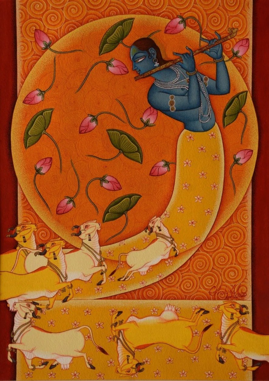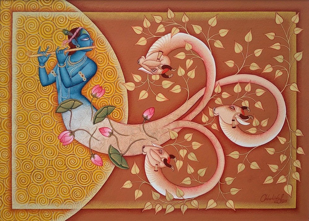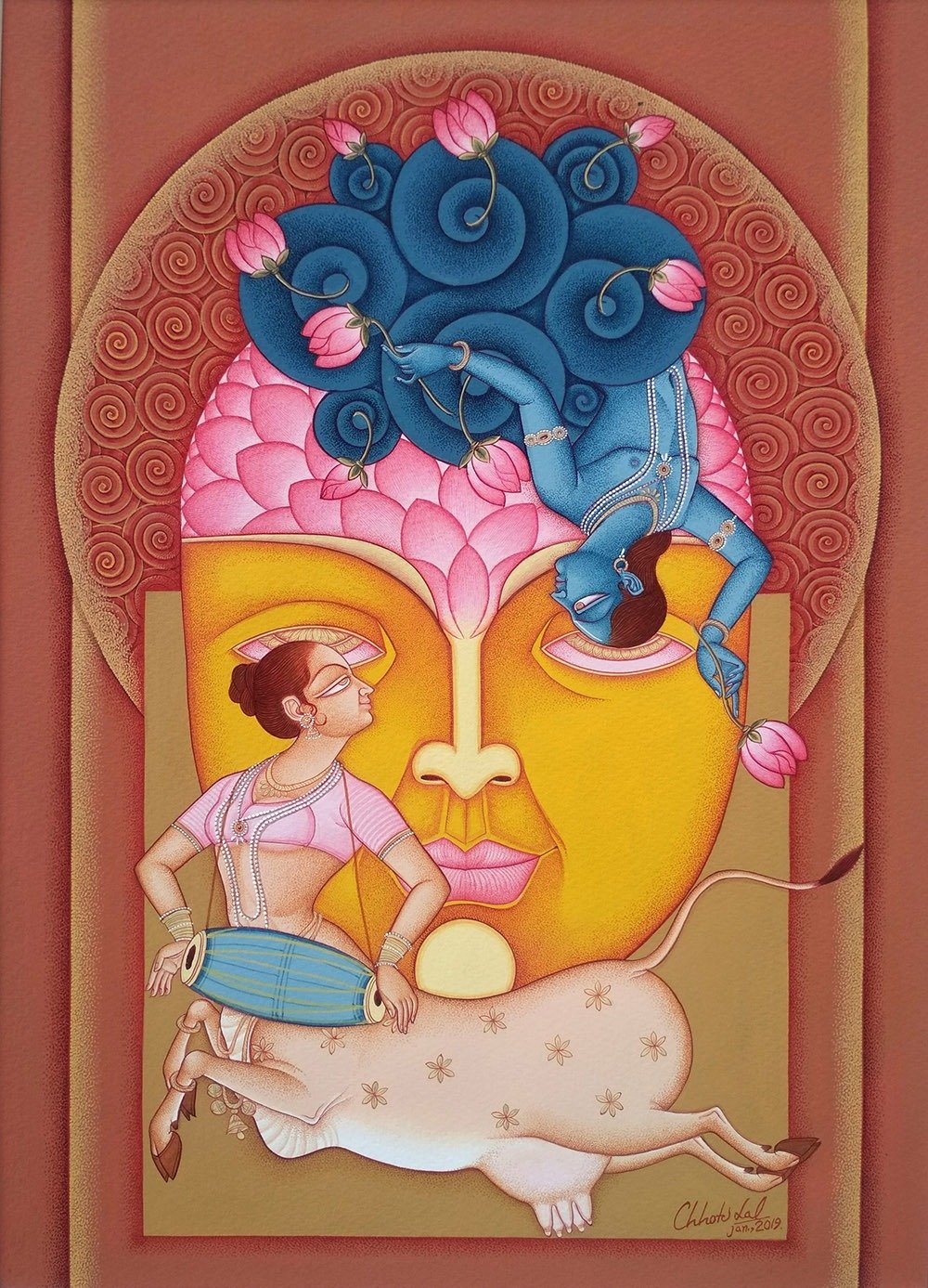 Artist, Chhotu Lal stands among the foremost contemporary practitioners of the Indian miniature tradition, working from his studio in Udaipur. His practice is distinguished by an exacting adherence to classical technique, combined with a quiet, contemporary sensibility that lends his compositions both precision and poetic depth.