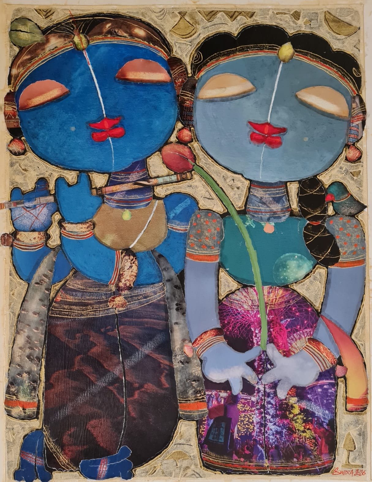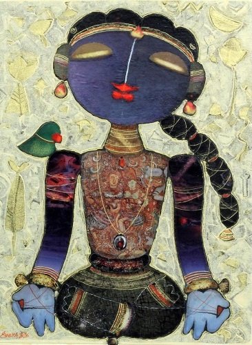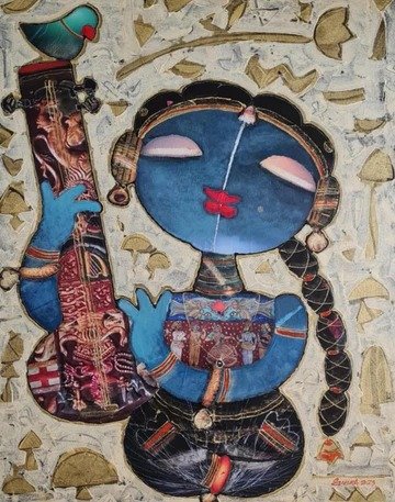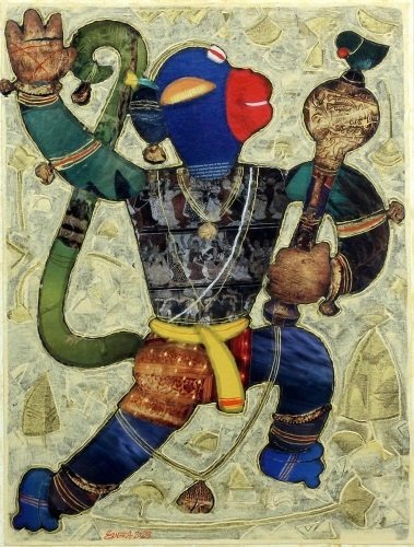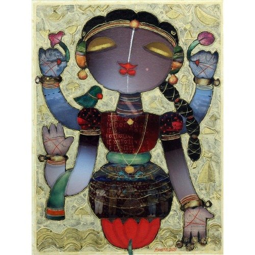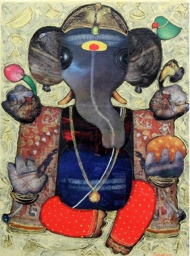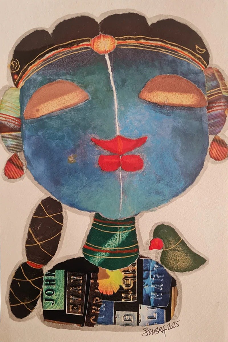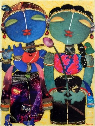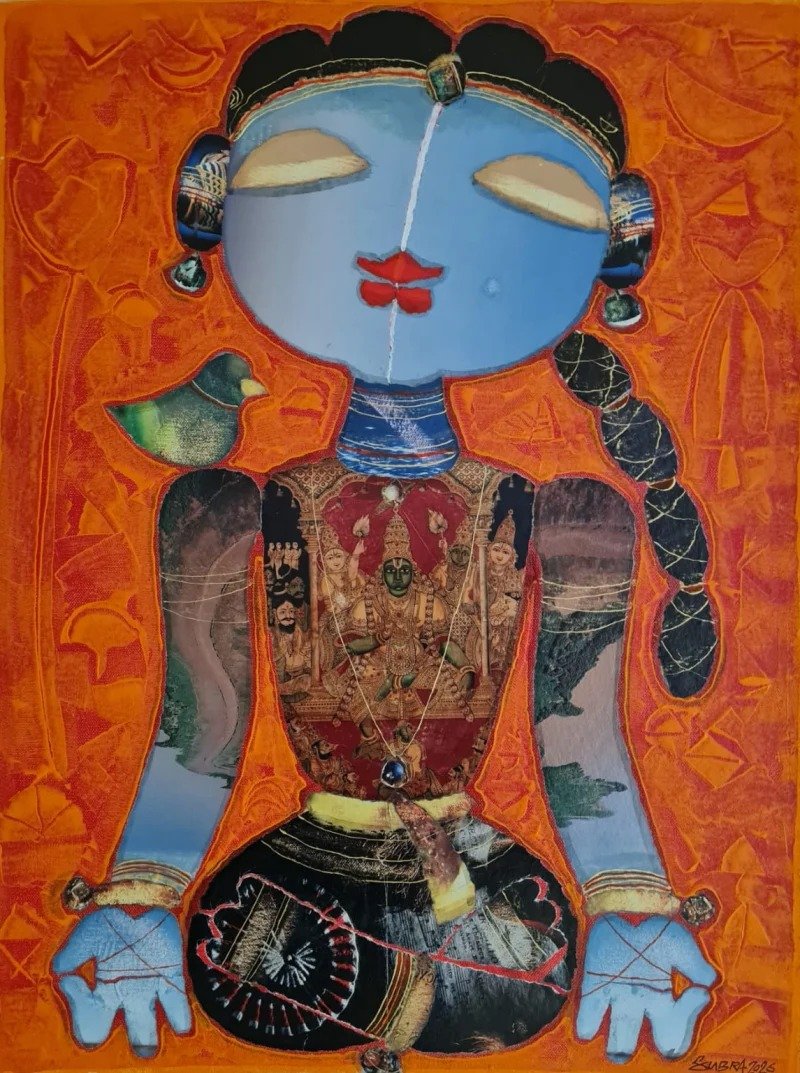 Inspired by the costumes that his father would wear as a theatre artist, the artist works in mixed media and using various techniques, such as calligraphy, and different styles/themes, such as abstract backgrounds, Indian myth and tradition to bring his collages to life. He has portrayed Krishna, Buddha, Ganesha and other mythological figures in his work. Subramanian has been honoured with numerous awards, among them are Tamil Nadu State Lalit Kala Akademi Award (1998), AIFACS Award, All India Fine Arts & Crafts Society, New Delhi (2000) and Saudia 6th Malwan GCC Countries Biennale Award (2003).