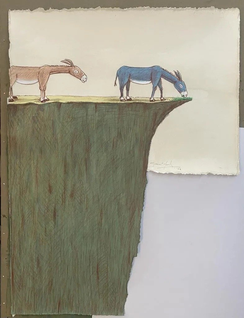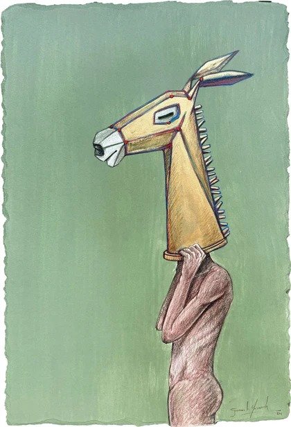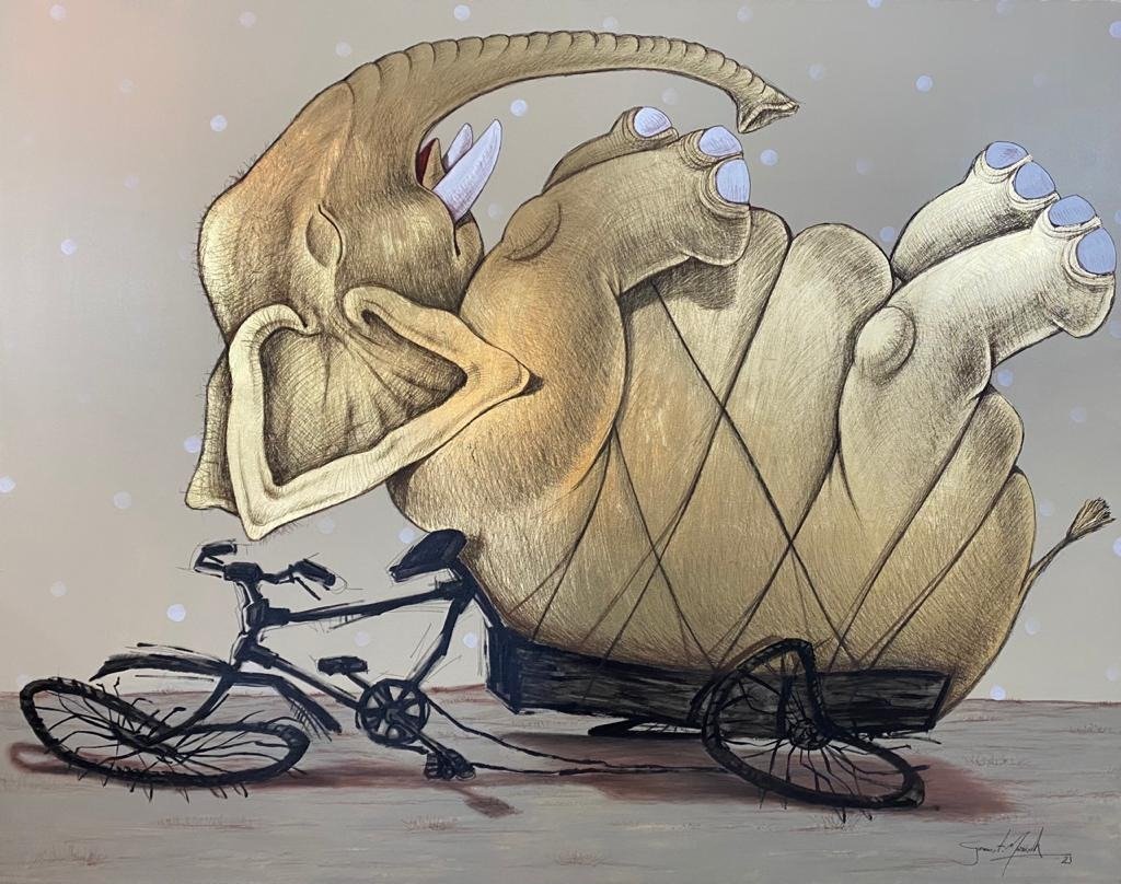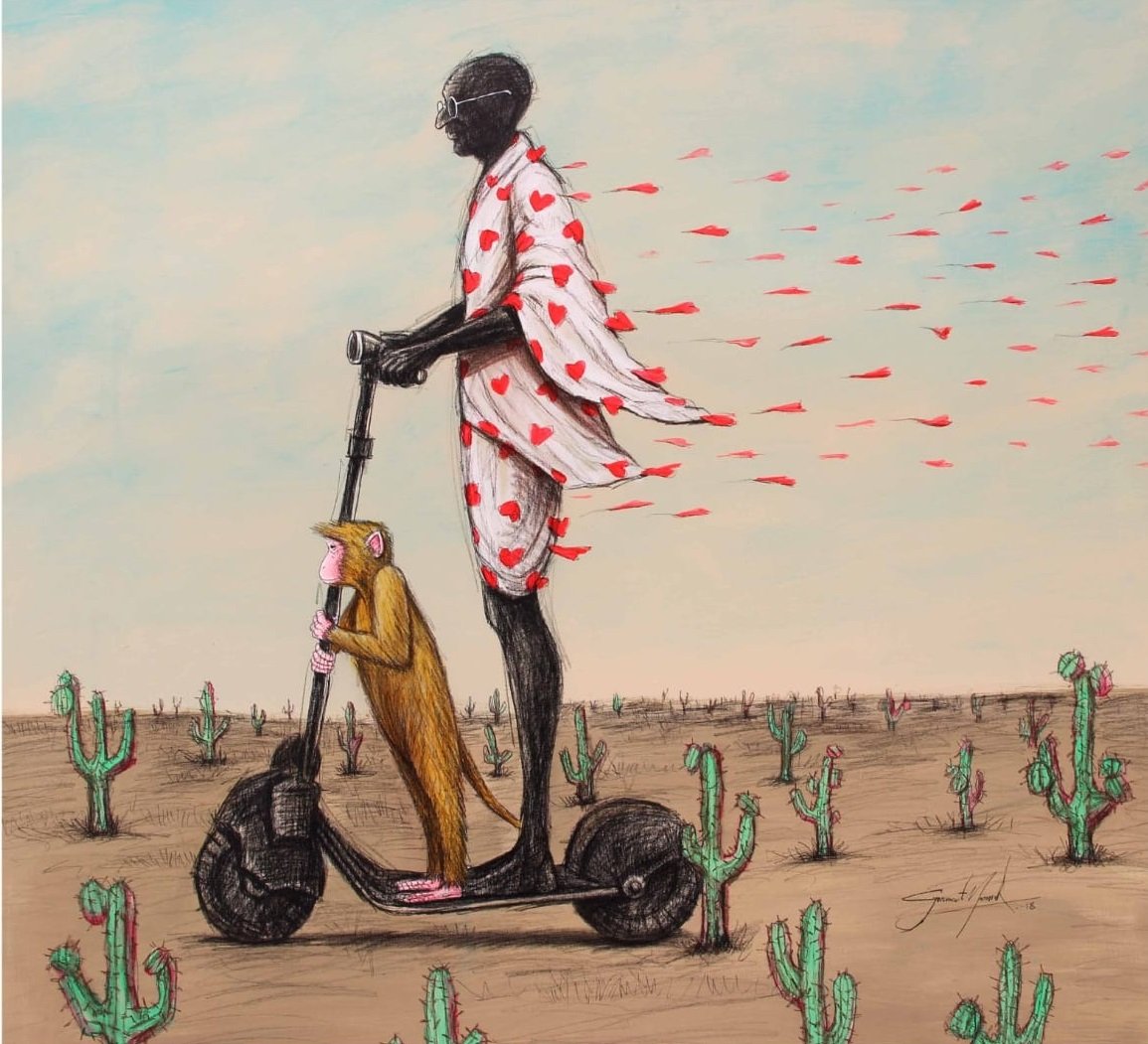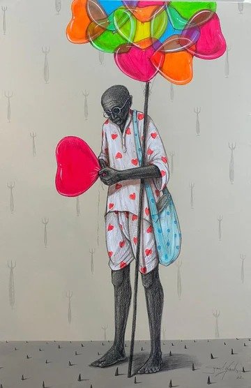 Artist, Gurmeet Marwah is an ardent romantic at heart. His work is based on stories at the personal and the social level. His art is an expression of what he sees in his environment. In that sense he is very contemporary. His art is usually abstract representations that has his unique trademark and boy, do they drip of sarcasm!!