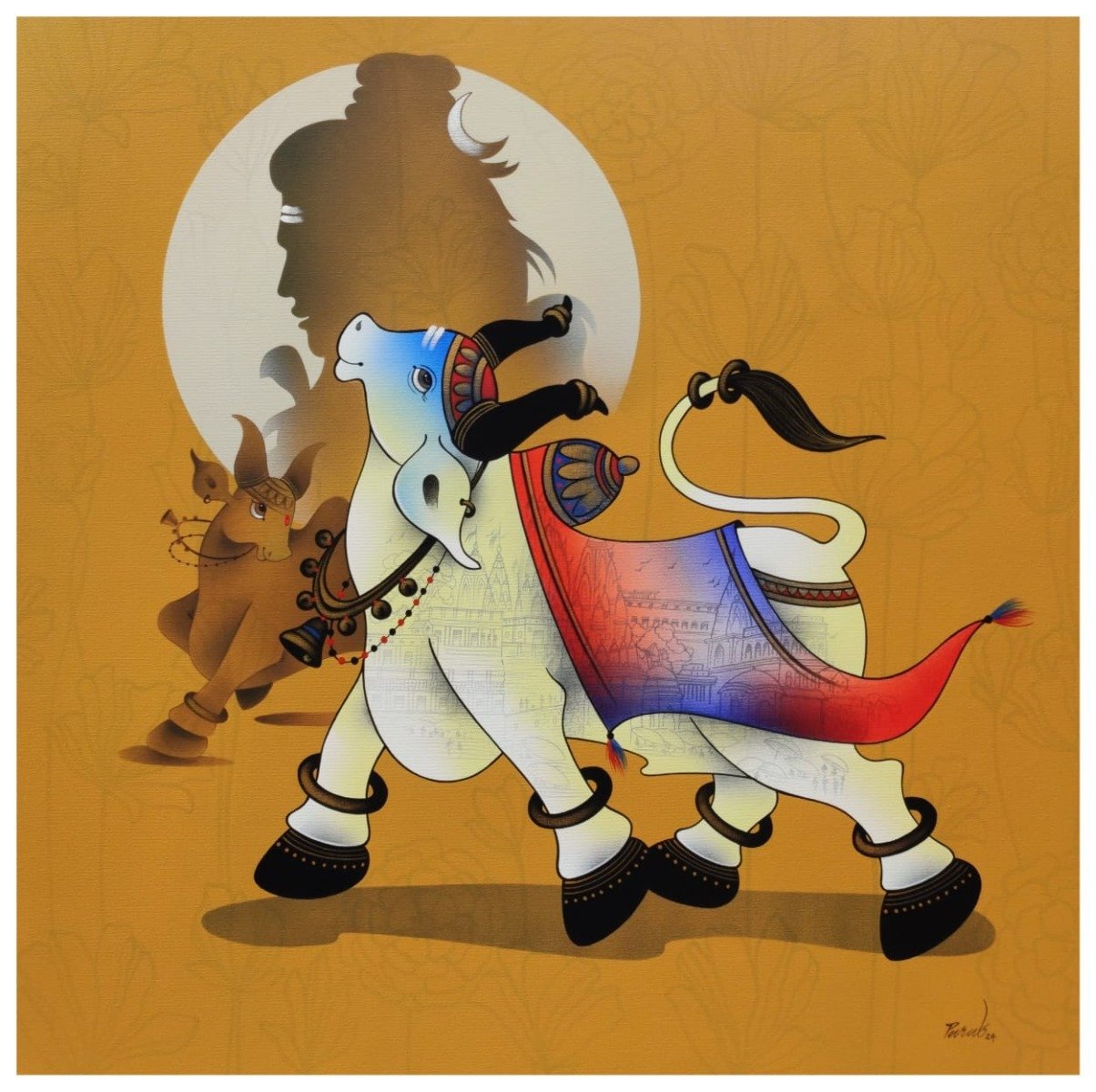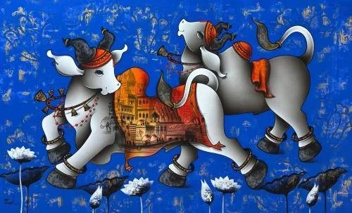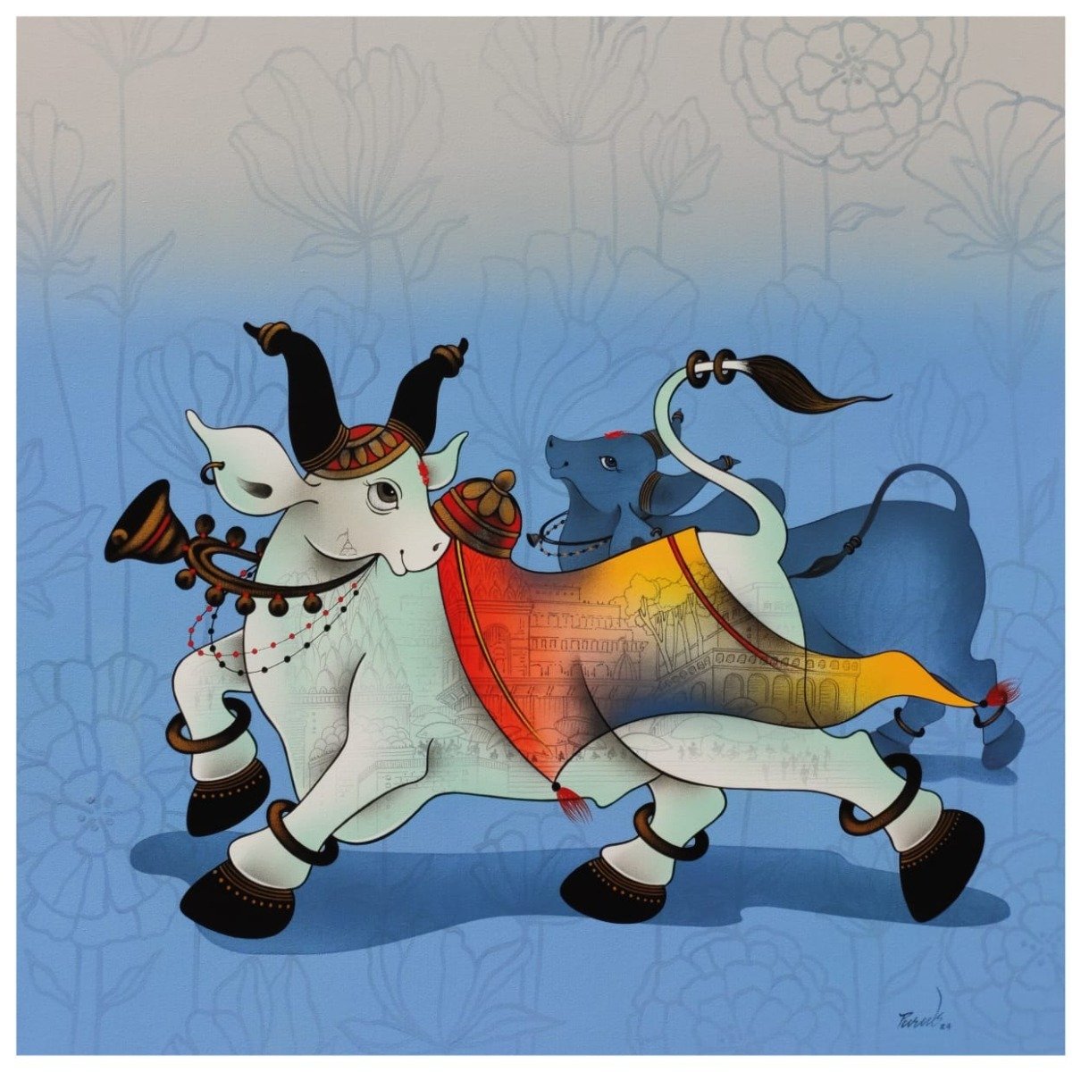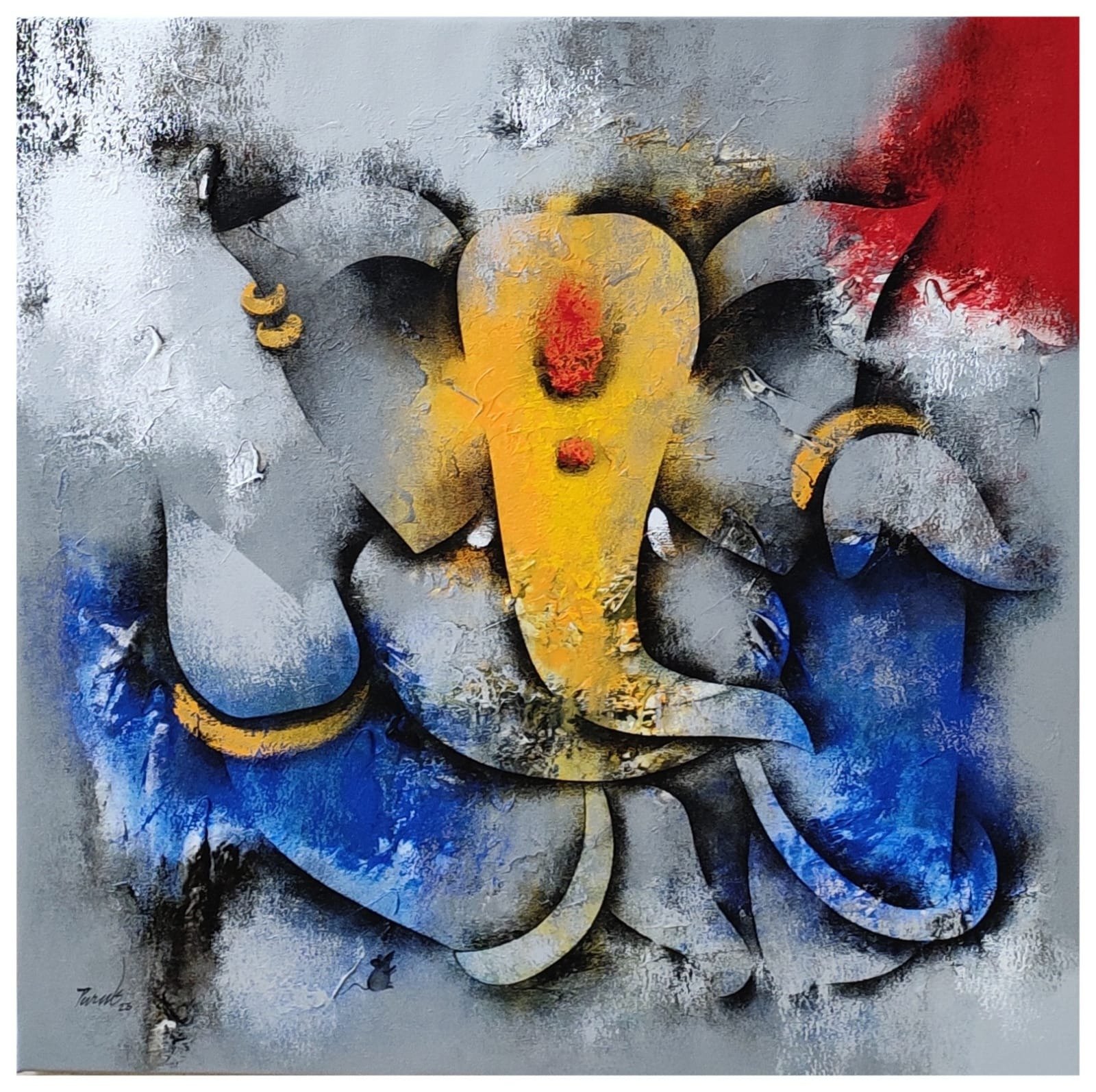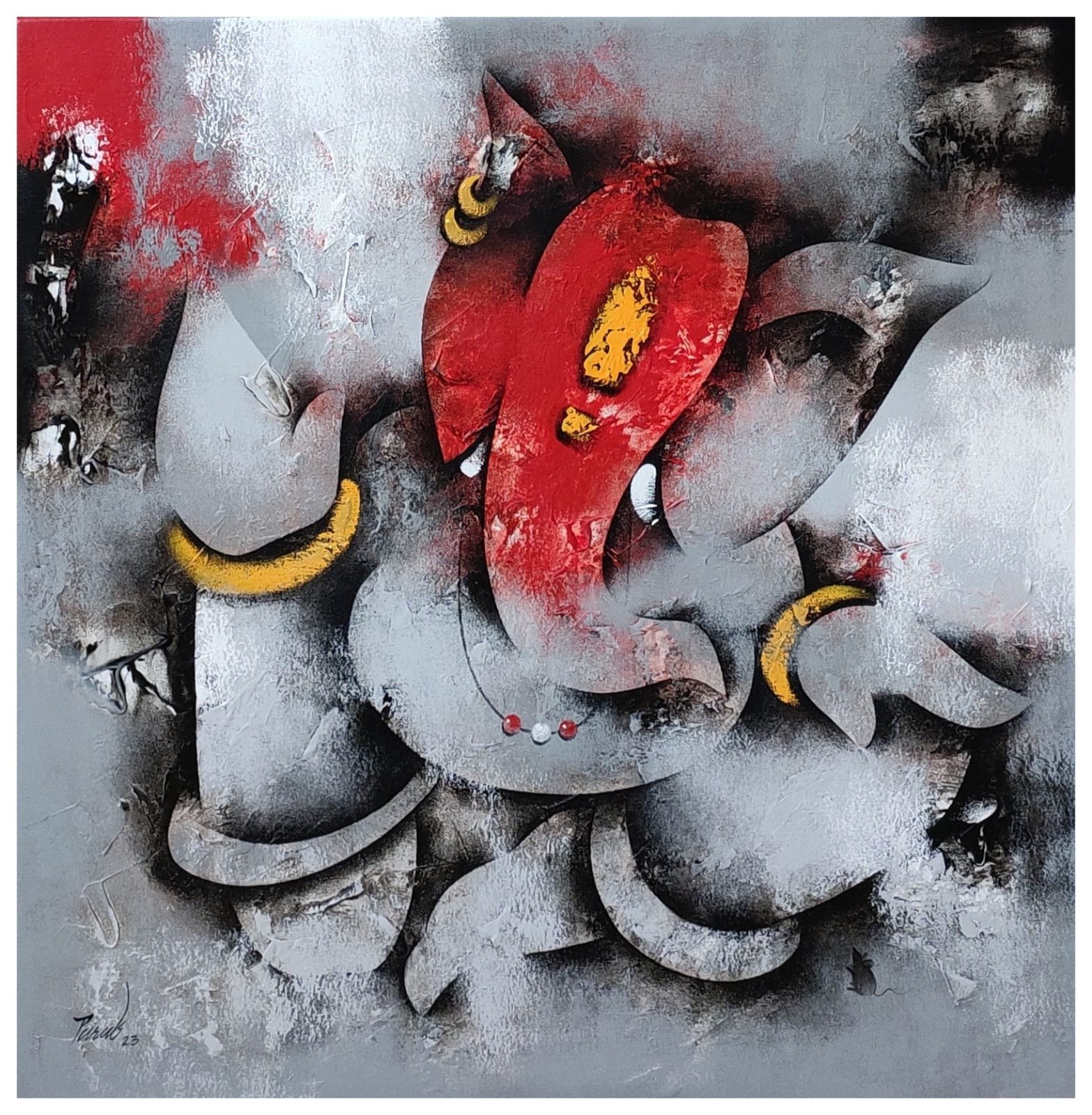 Artist Paras Parmar’s paintings are subtle, yet vibrant and the energetic brush strokes express an emerging independence of inner vision. Due to the past struggles in his personal life he investigates with his spirit to find out the solution. His inner feelings and moods can be experienced by his various brush techniques. His canvases executed in acrylic colour have an element of mystery in them which makes the viewer pause and ponder, invoking personal memories and sparking imagination. There is a positive energy and strong movement in his paintings.