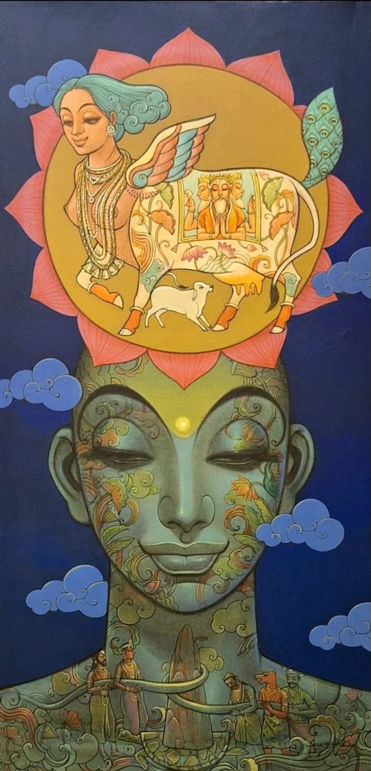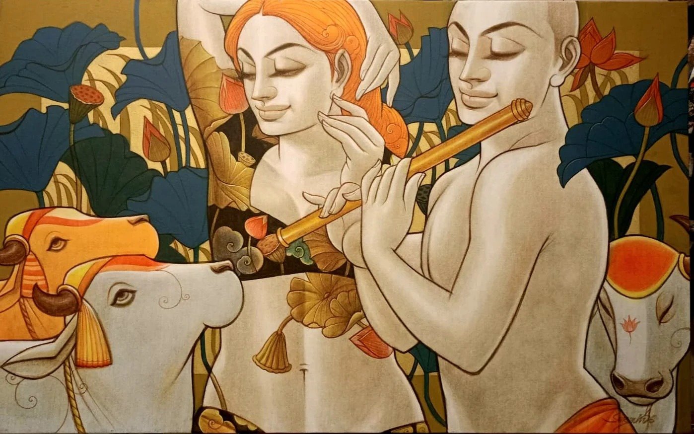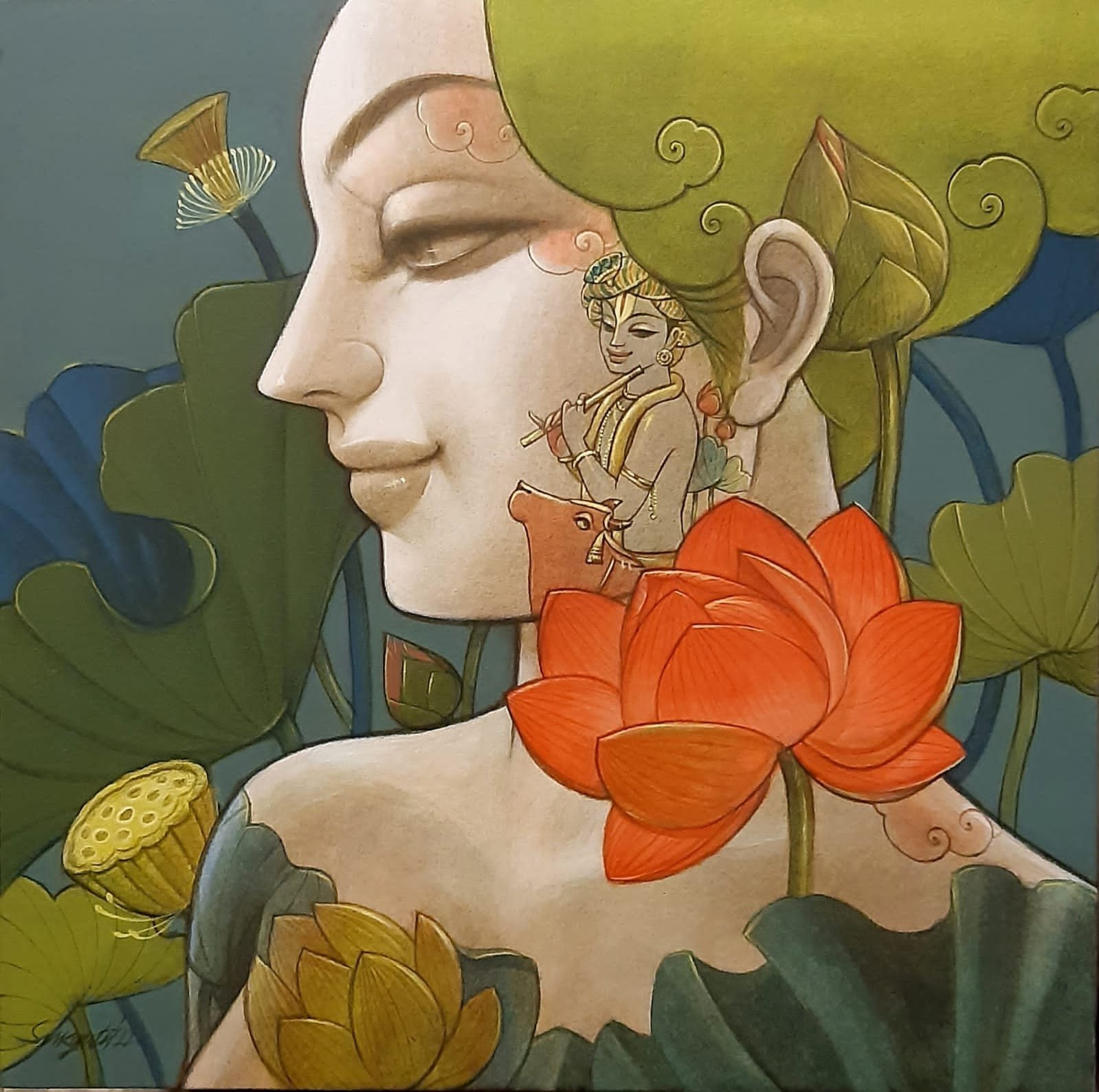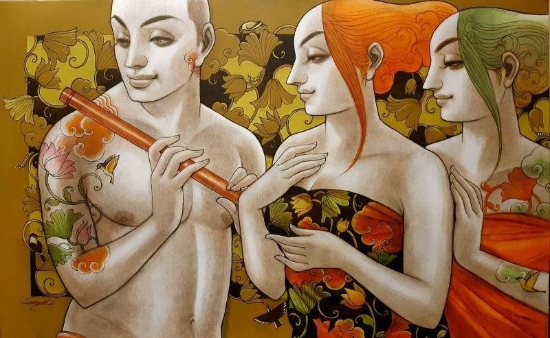 Associating life and mythology with nature comes naturally to Artist Sukanta Das. Sukanta Das is an established artist based in Kolkata. He has done several solo and group shows successfully in India and abroad. “As an artist, I am primarily inspired by the human body and nature. I love to use subtle hues and tones to portray their interdependence and symbiotic relationships. My canvases are a homage to the stories of celestial love and the ethereal co-existence of nature with humans. Mythological representation of this interconnection fabricates a new world of symbolic fantasy that celebrates sublime love.” he shares…