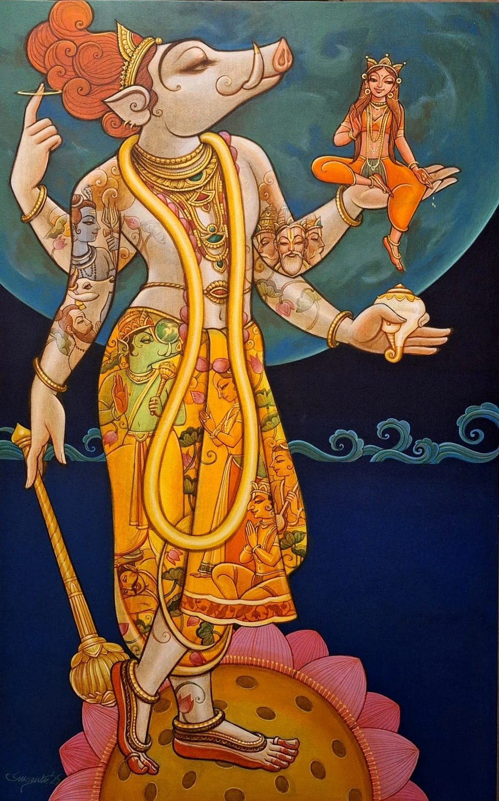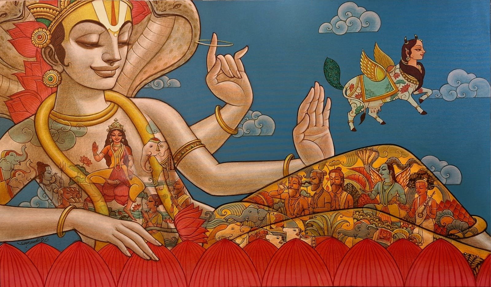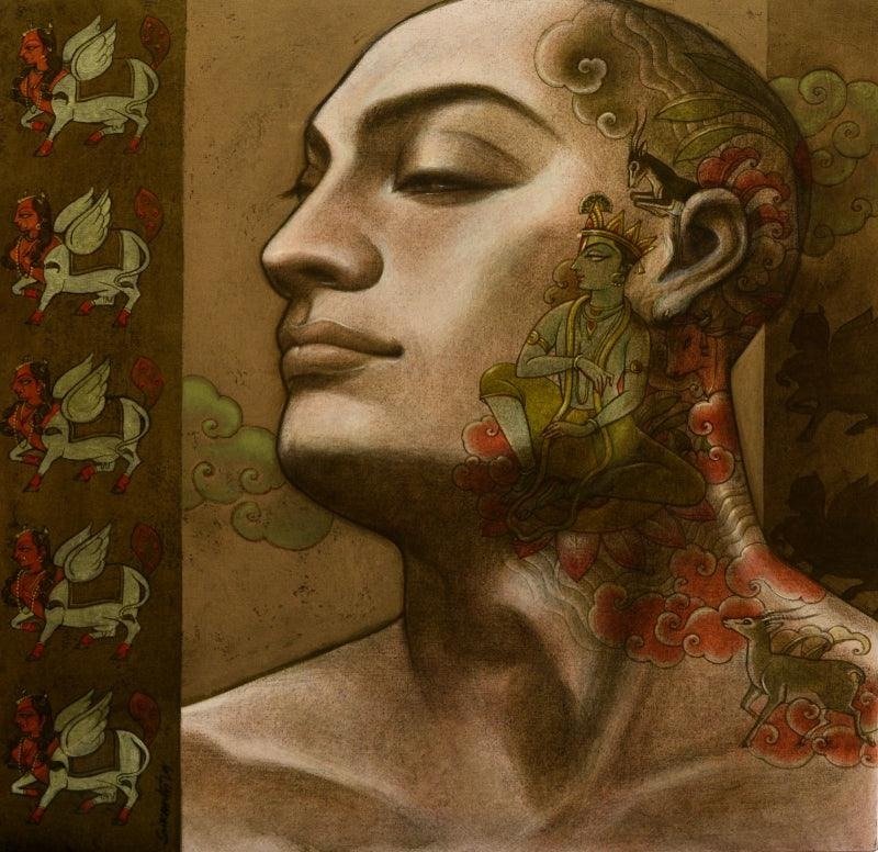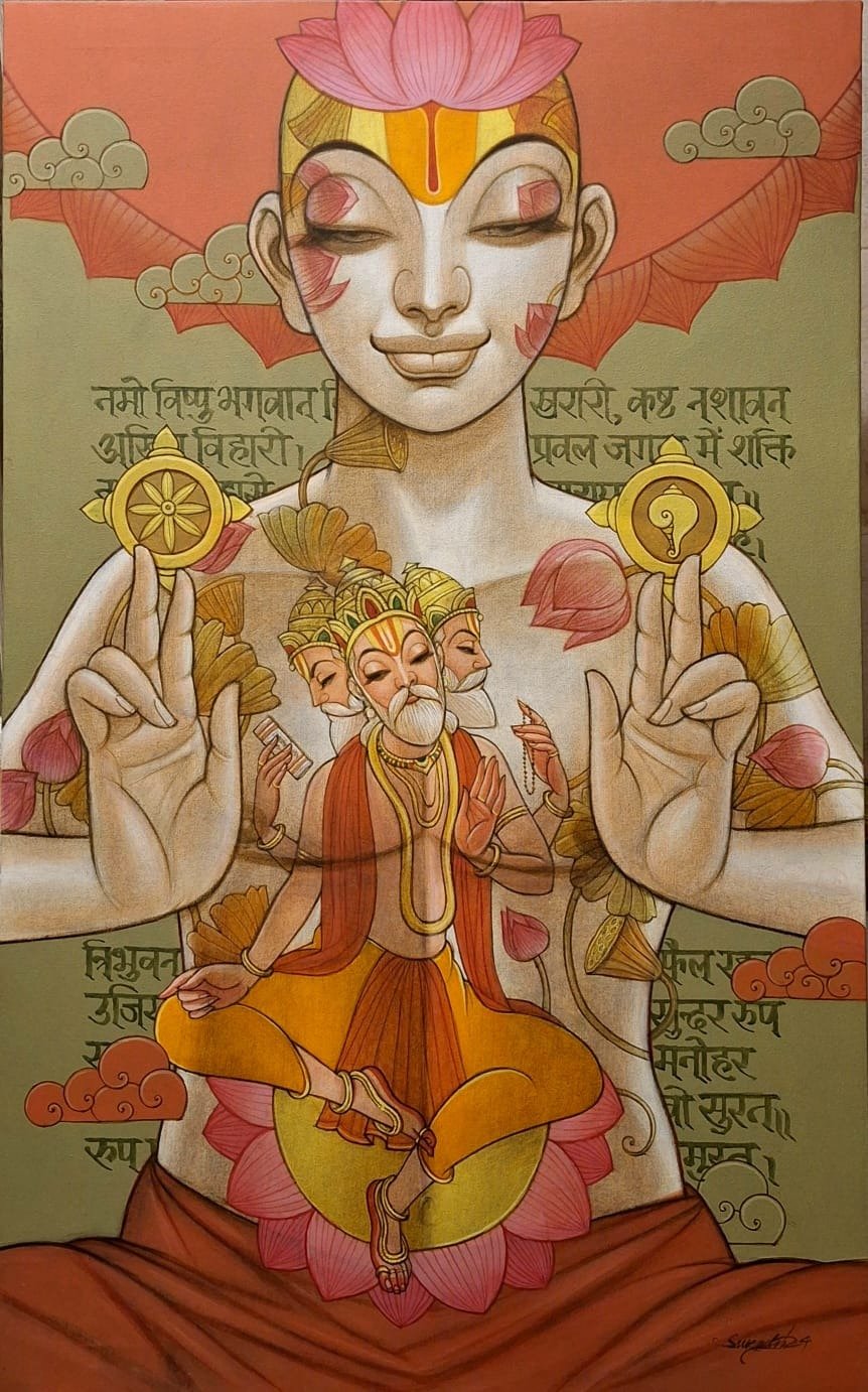 Associating life and mythology with nature comes naturally to Artist Sukanta Das. Sukanta Das is an established artist based in Kolkata. He has done several solo and group shows successfully in India and abroad. “As an artist, I am primarily inspired by the human body and nature. I love to use subtle hues and tones to portray their interdependence and symbiotic relationships. My canvases are a homage to the stories of celestial love and the ethereal co-existence of nature with humans. Mythological representation of this interconnection fabricates a new world of symbolic fantasy that celebrates sublime love.” he shares…