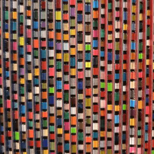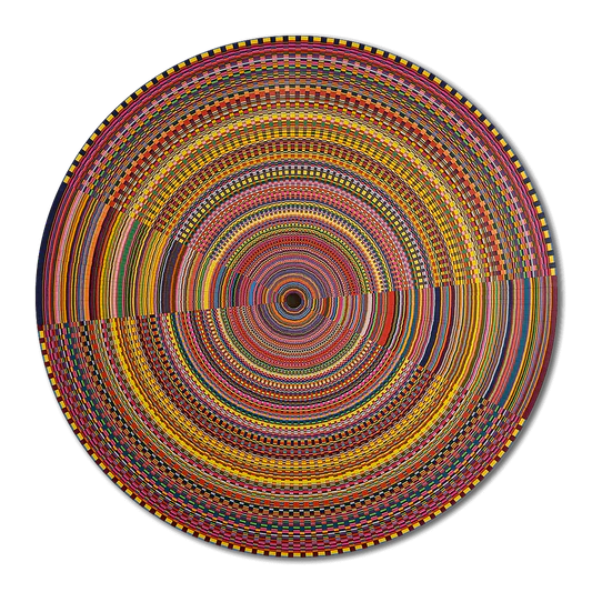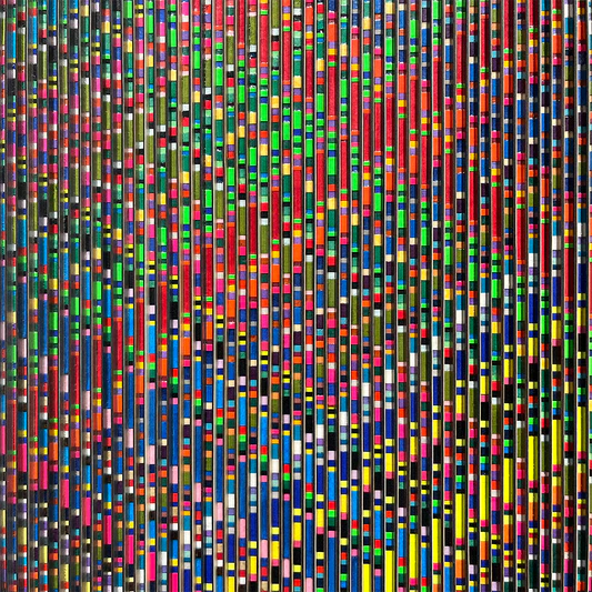 Yuvan Bothysathuvar constructs a visual universe that is at once playful and intensely immersive. His abstract collages unfold like intricate tapestries, drawing the viewer into a charged field of colour, rhythm, and movement. At first encounter, the works dazzle with their vibrancy, but linger a moment longer and a deeper, almost meditative complexity begins to surface.